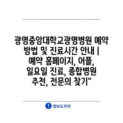 광명중앙대학교광명병원 예약 방법 및 진료시간 안내 | 예약 홈페이지, 어플, 일요일 진료, 종합병원 추천, 전문의 찾기”