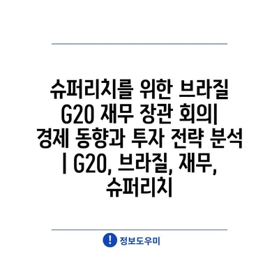 슈퍼리치를 위한 브라질 G20 재무 장관 회의| 경제 동향과 투자 전략 분석 | G20, 브라질, 재무, 슈퍼리치